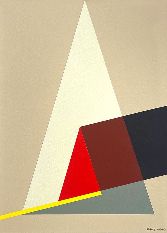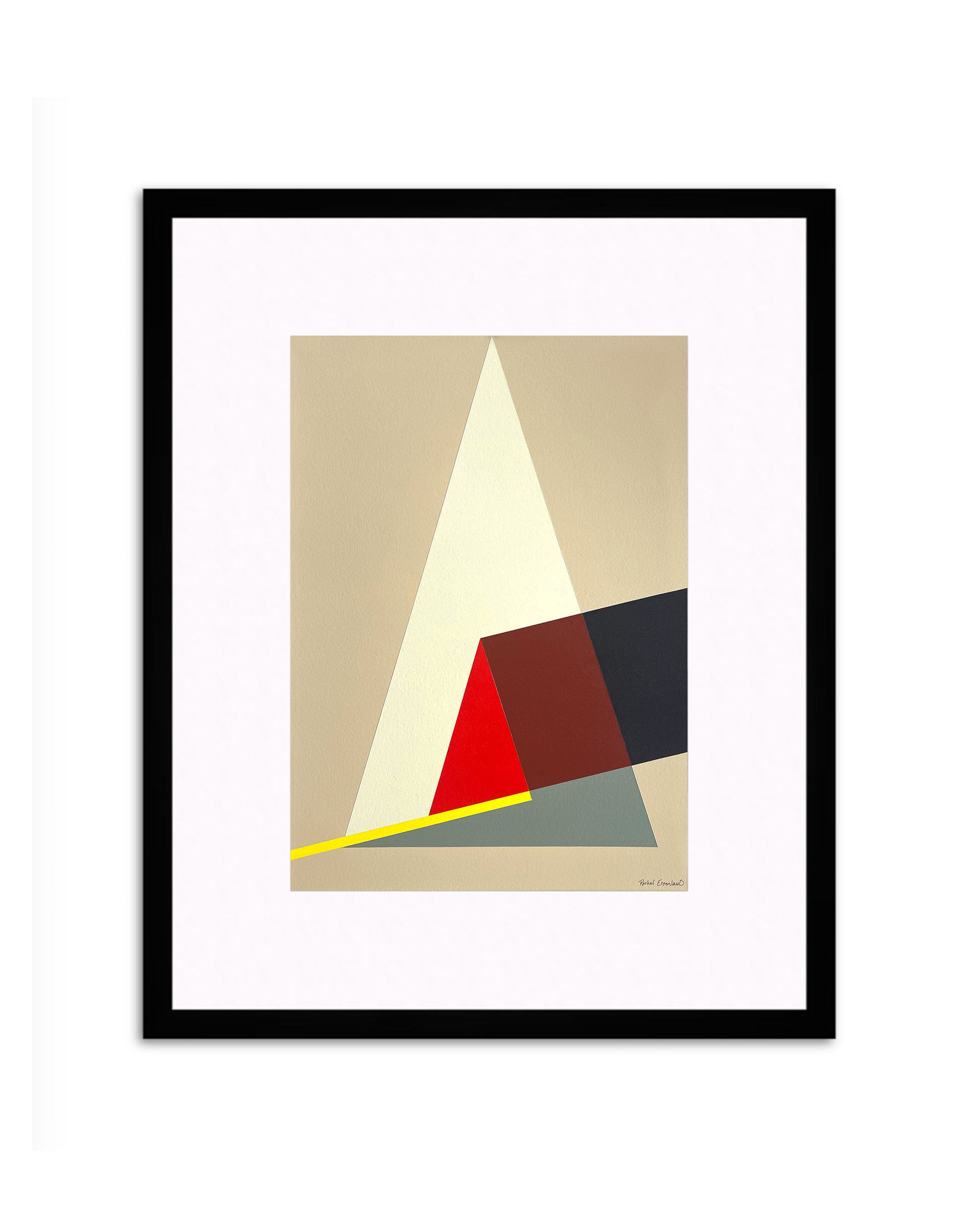 An acrylic painting on paper presented in a black wood frame with white matting, finished with anti-reflective acrylic.
