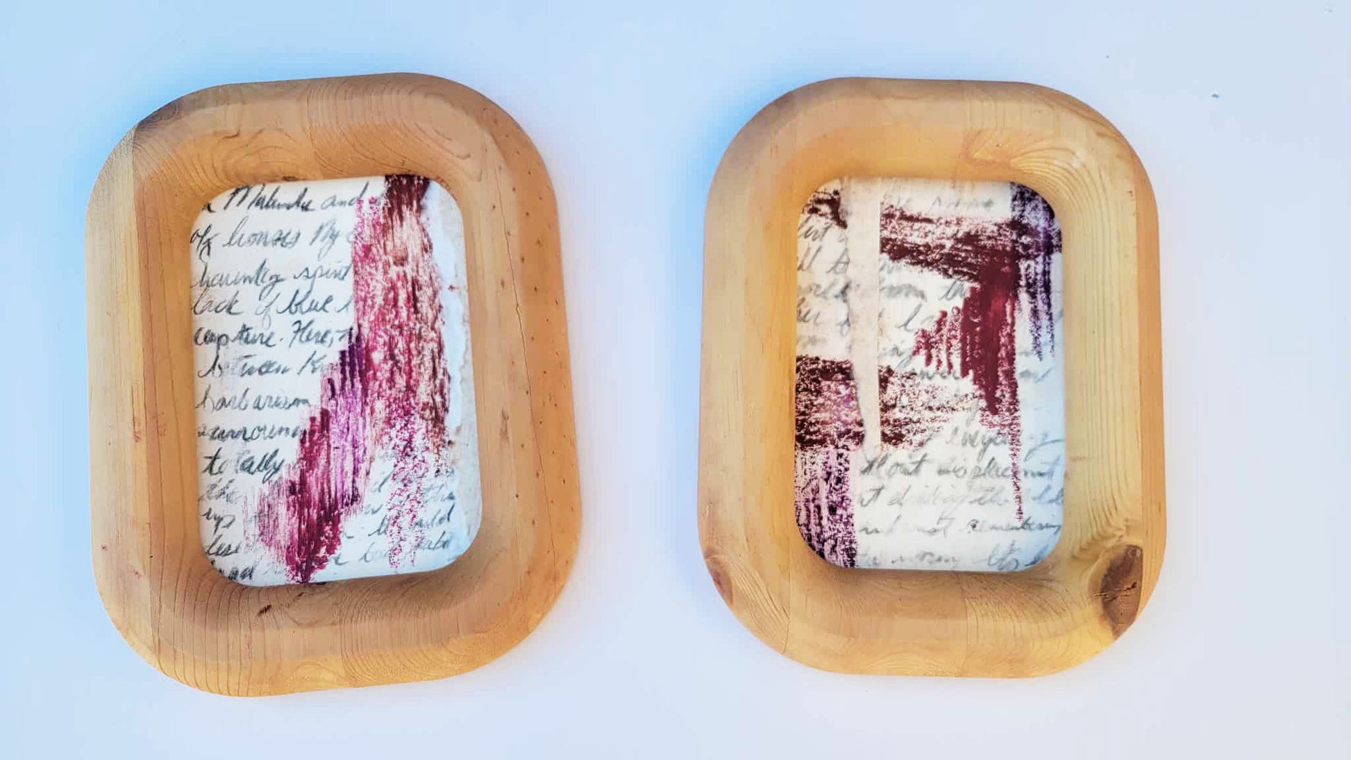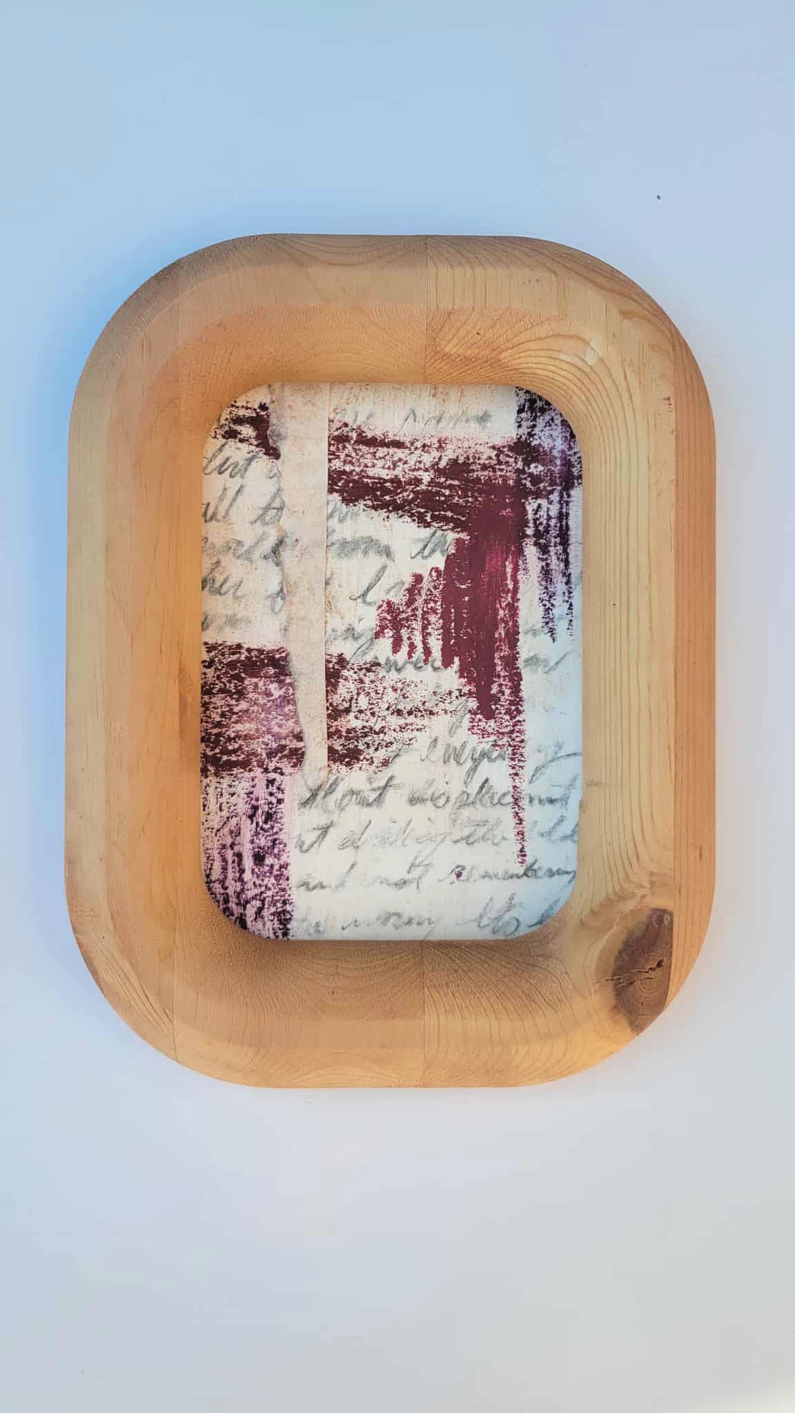 LIpstick, charcoal, holy Chimayo Soil,wood