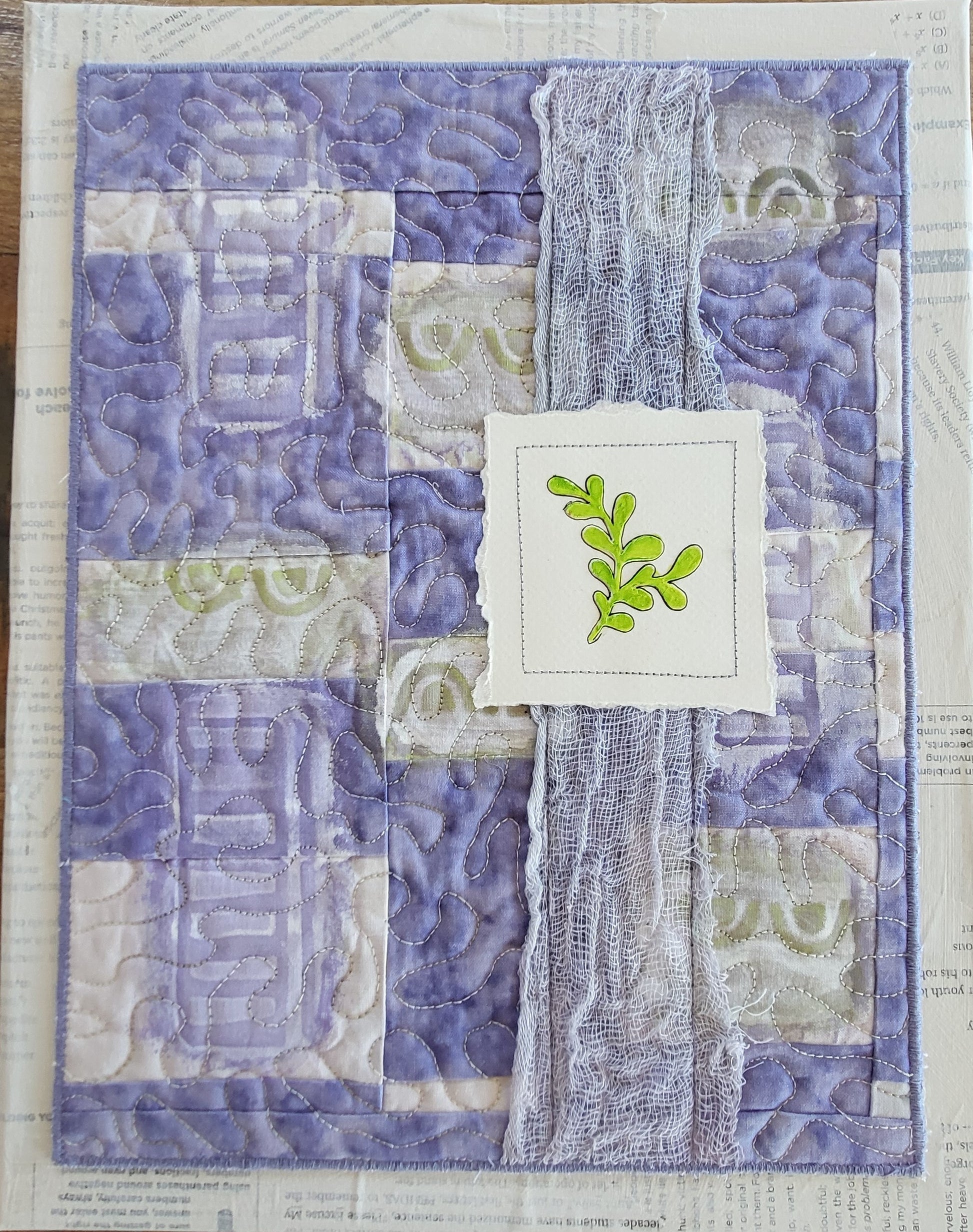 Cotton and polyester fabrics, acrylic paint, threads