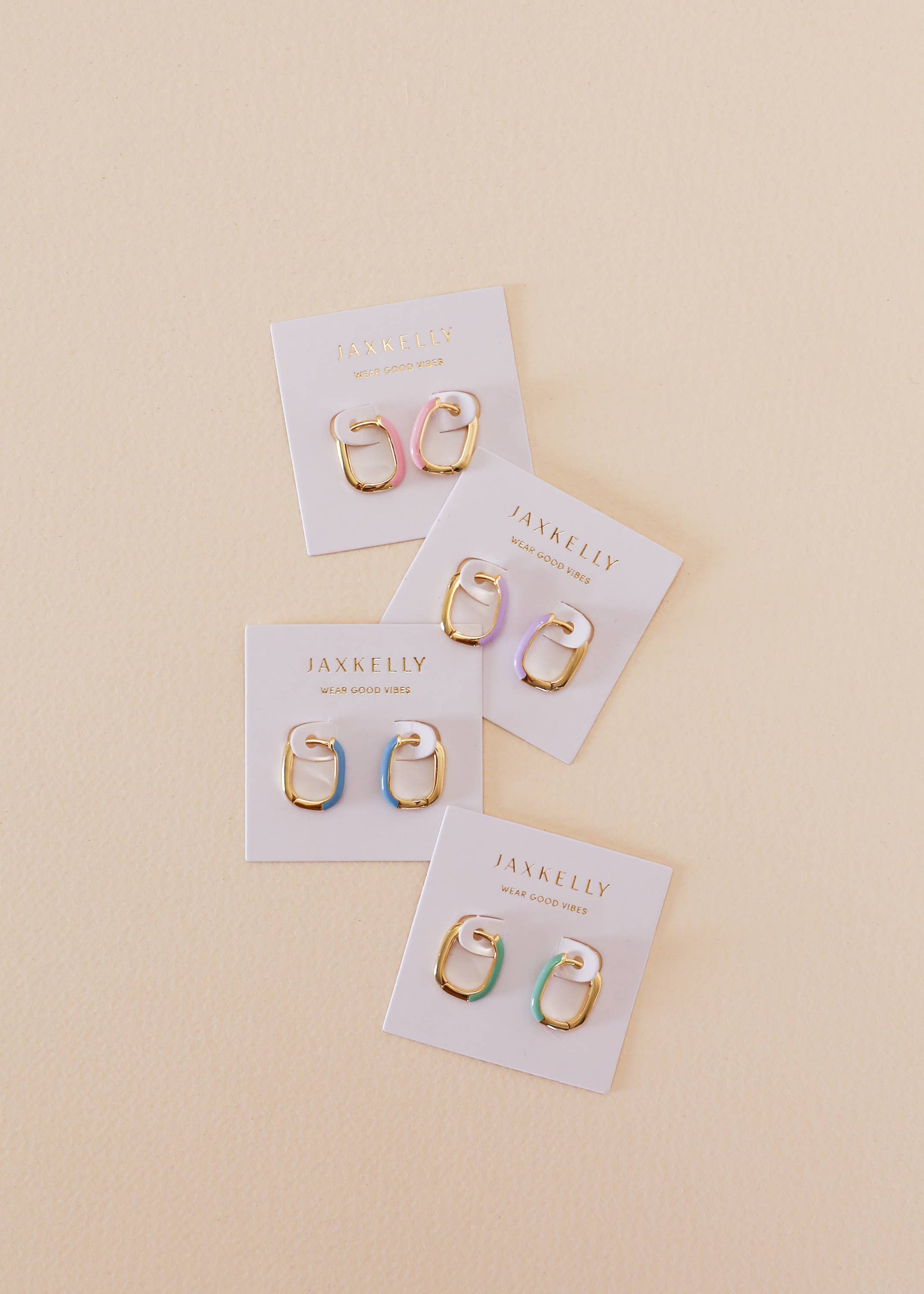 JaxKelly - Color Dipped Rectangle Hoop Earrings - Sea Green Enamel