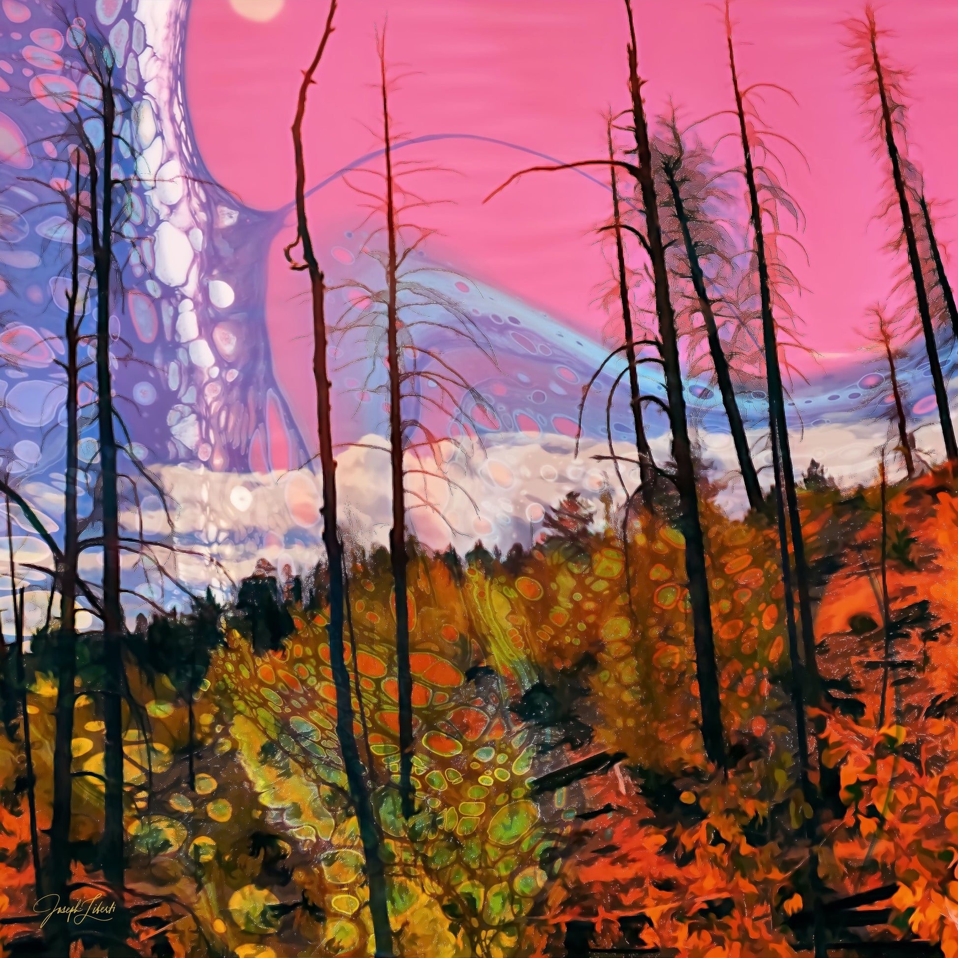 This Open Edition art is infused into vivd metal and mounted on a 1.5" wood frame.