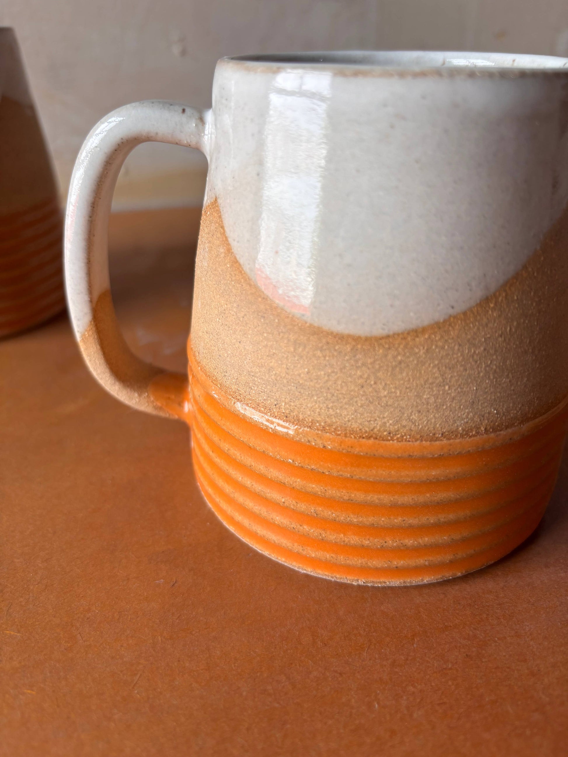 Inspired by architectural reeding and the natural rhythm of the landscape, this thoughtfully designed tumbler features a horizontal reeding design at the base, creating a unique texture to highlight the the nuances of the glaze. With special attention to the size and pitch of the handles, this mug is exceptionally comfortable to hold. Perfect for daily rituals or thoughtful gifting, each piece is hand shaped and glazed, an no two are exactly alike.