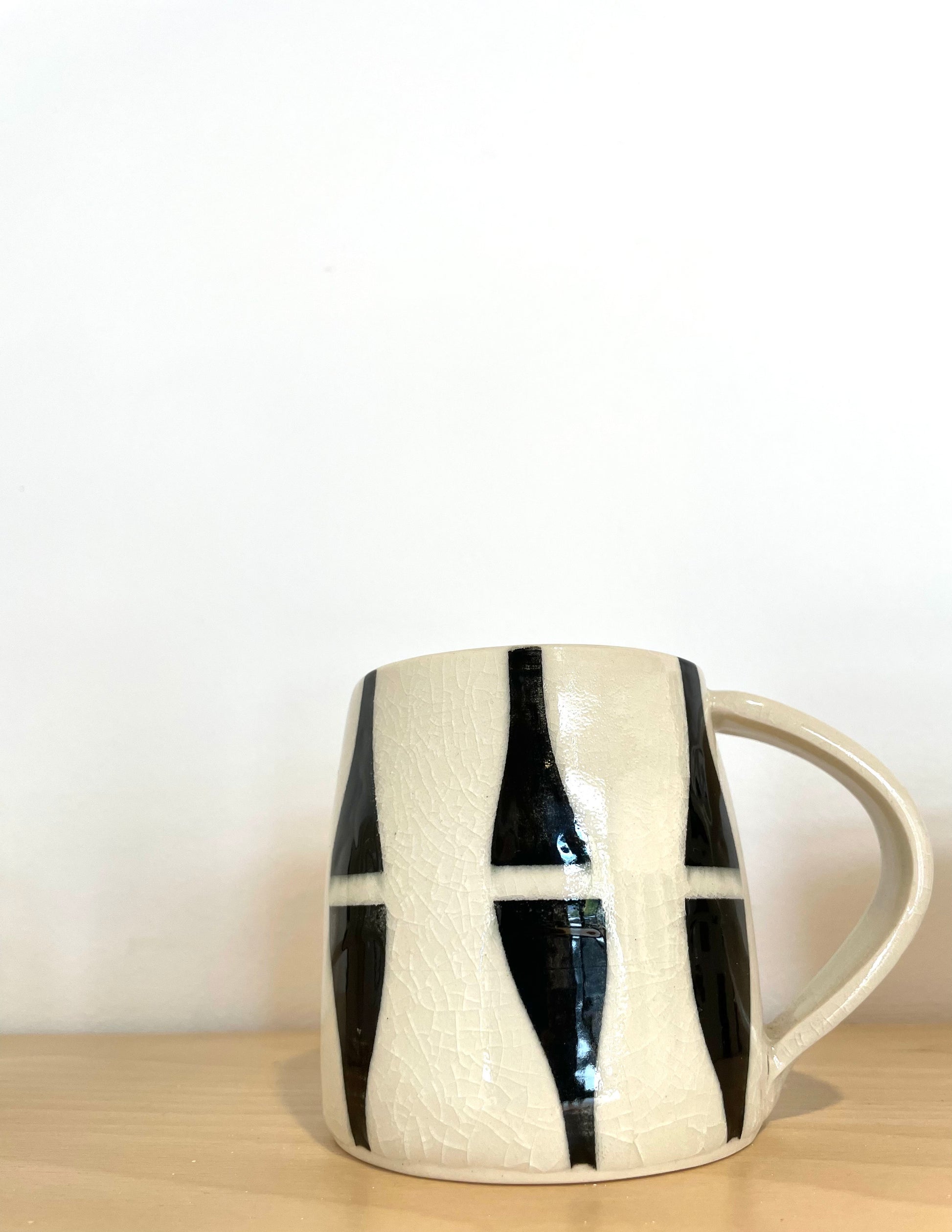 Toots Ceramics - Porcelain mug, black/cream stripe