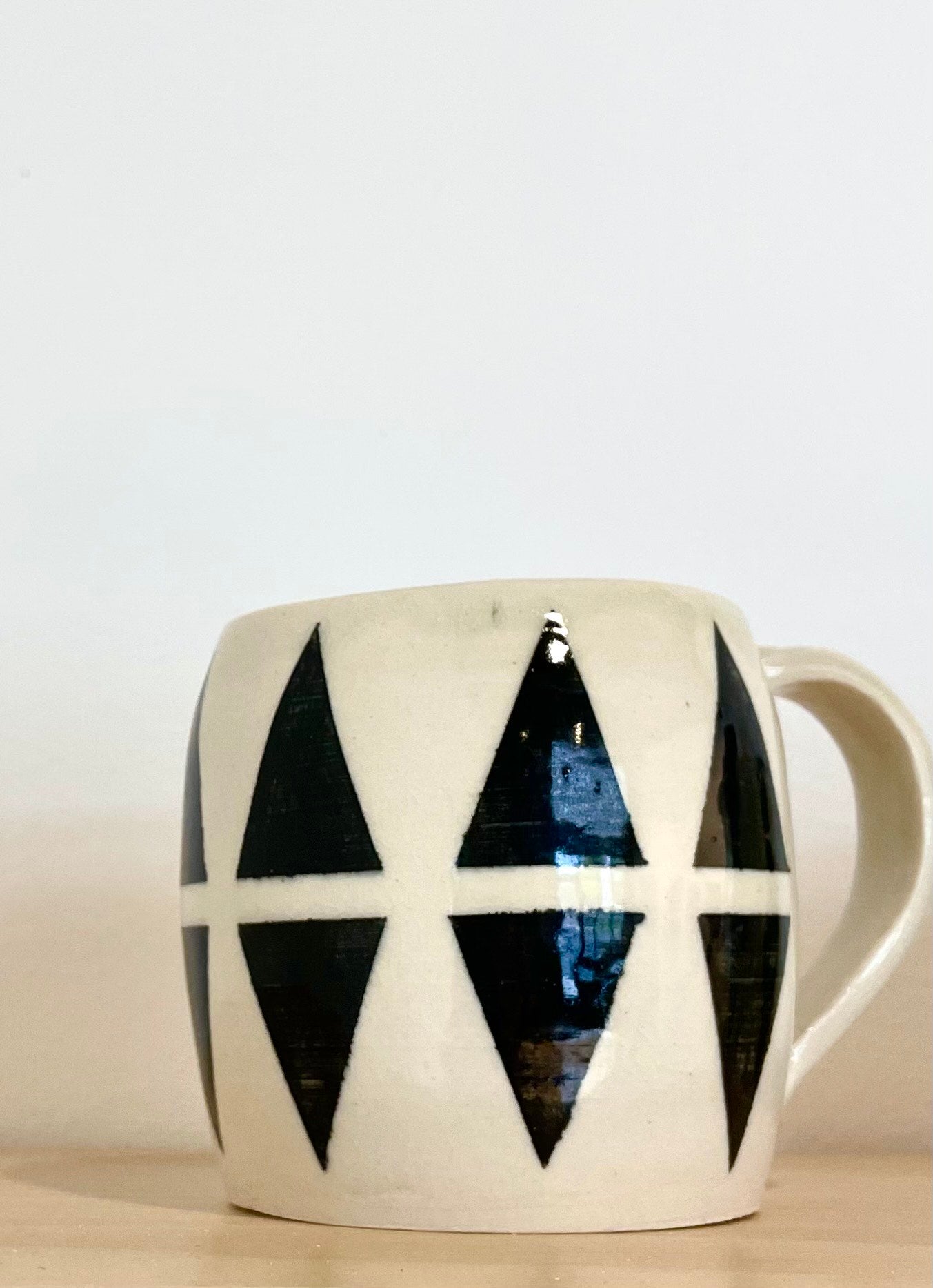Toots Ceramics-Porcelain mug, black/cream triangle