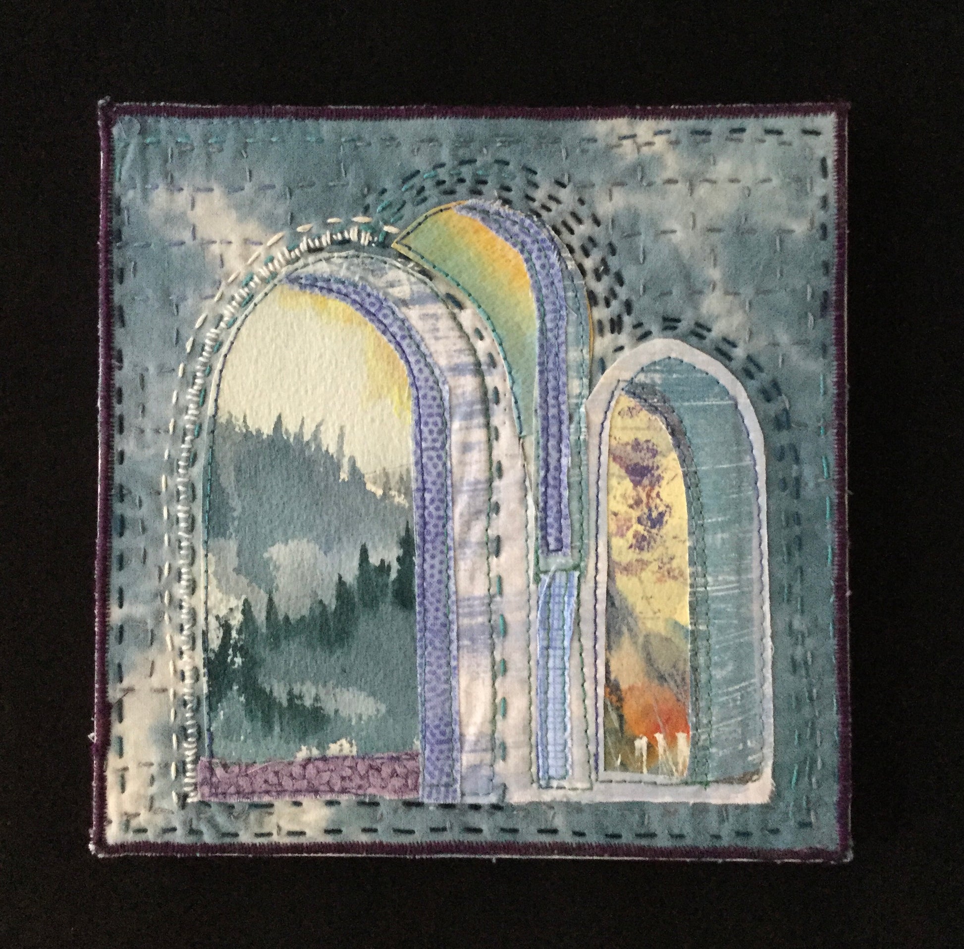 textile/watercolor collage