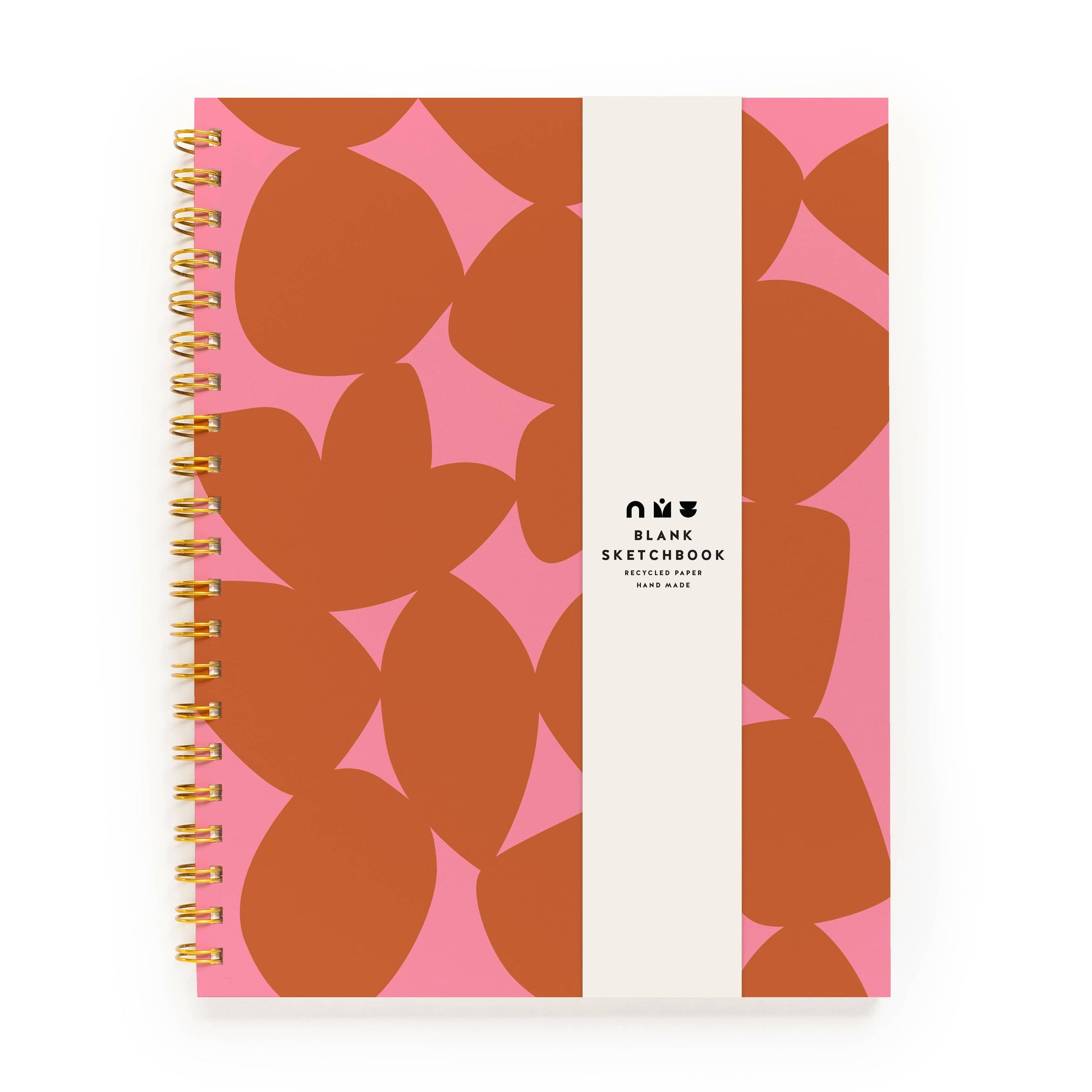 Give yourself the gift of self-expression and creative exploration with a specially designed sketchbook that encourages you to create in style. The Magma Pebble pattern was inspired by organic forms and stones, designed to be colorful, warm and inspiring. Our sketchbooks are created with sturdy covers and soft and smooth inside paper to offer a delicious tactile experience. Size: 8.5 x 11 inches Paper: 100% recycled 70lb soft white paper inside Cover: Savoy cotton double thick letterpress paper Screen printed using hand-mixed, eco-friendly ink Wire-bound and assembled locally in Ypsilanti, MI • Handmade • Eco-friendly